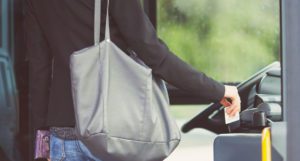 Passenger paying the bus fare with a contacless card